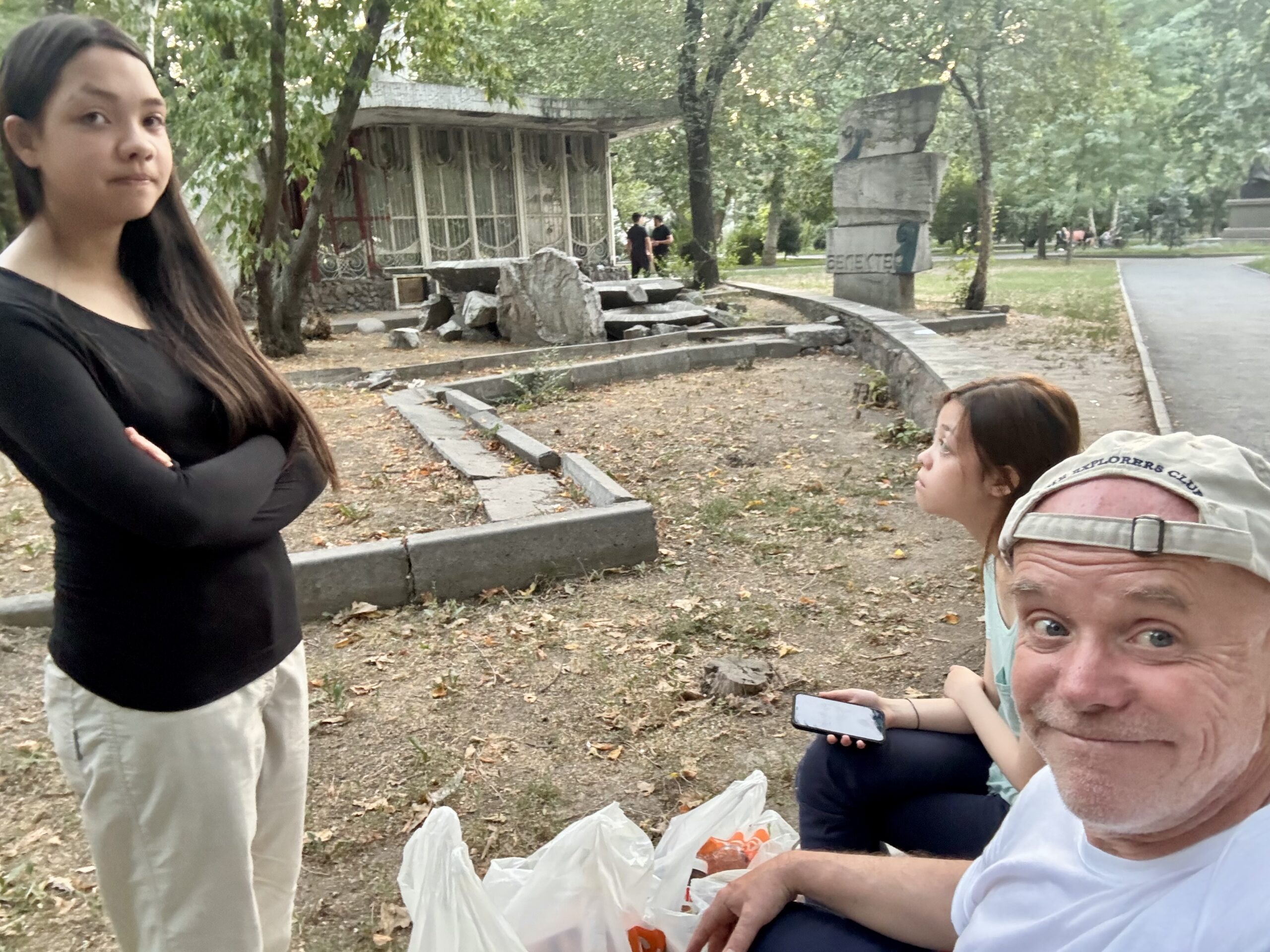 This is a trip where the girls are 100% in the centre. From their perspective, they will narrate the upcoming film. It’s a huge task, so it’s important we settle in slowly. I expect us to stay here in Bishkek for about a week before we head east. The jet lag is tough, and the culture is new to the girls — even though it’s quite similar to the six months we spent in Karaganda, Kazakhstan when they were little. Yeah, they don’t remember. So I have to ease them into the food and get us out for some walks every day. Middays are hot, but mornings and evenings are great. Lots of parks in the city centre. I already love Bishkek.
