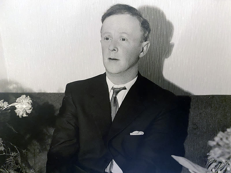 You can tell Dad wasn’t used to wearing a suit. He’s forgotten to fasten the bottom button. The tie knot is no masterpiece. He was probably more at home in his bricklayer’s clothes. In fact, almost all my memories of him are of him either mowing the lawn at home, laying bricks, or tinkering around the farm. Or driving off in that red Saab to visit friends. And have a beer.